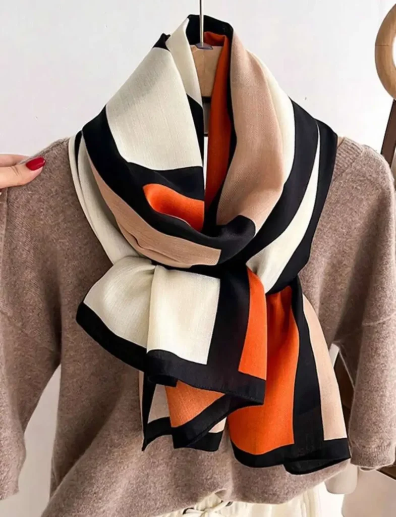Шал тип „безкрайност“ също е чудесен избор за ежедневието – поставя се лесно и изглежда модерно. Ако тоалетът ви е семпъл, изберете шал с ярък десен, за да стане централният акцент.